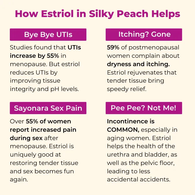 Here at Parlor Games, our goal is to make women's post-menopausal years their best ones yet, and so we created Silky Peach Cream.